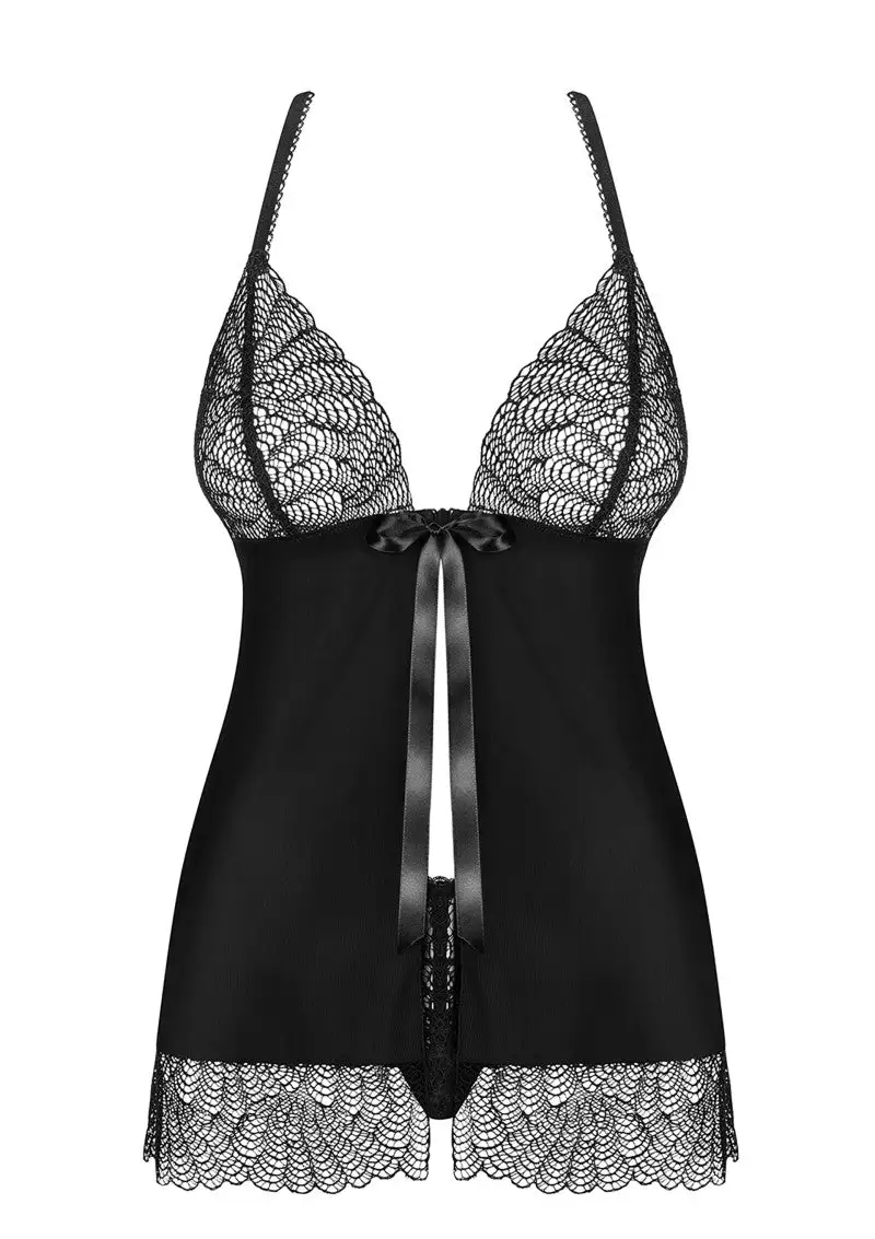 Babydoll met kant, open aan de voorkant. Inclusief string.