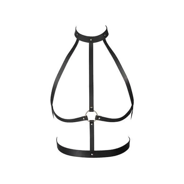 Dit harnas is gemaakt van vegan leather! Een polyurethaan, dat is een kunststof dat lijkt en voelt als zacht en soepel leer. Je kan het harnas prachtig combineren met tal van verschillende outfits voor een evenveel verschillende sferen. Op handige manier verstelbaar rond de hals, borst en rug.