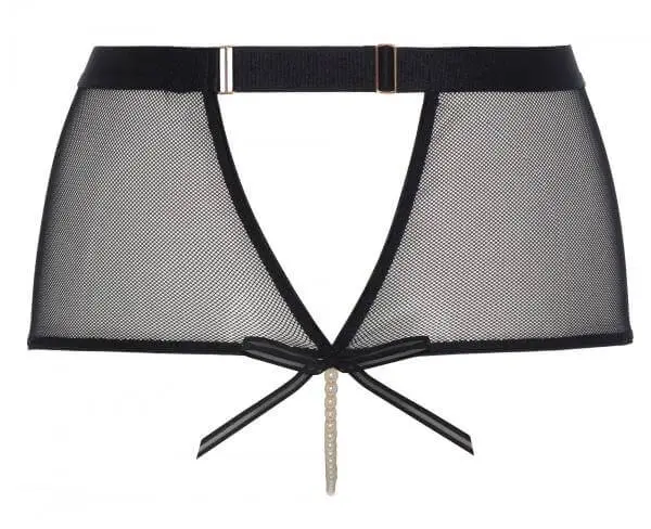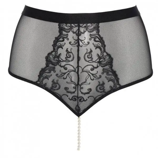 Sierlijke high waist brief met het karakteristieke parelsnoer van Bracli. De brief is gemaakt van geborduurde tule en satijn. Door een roze gouden sluiting aan de achterzijde kan je het broekje verstellen.