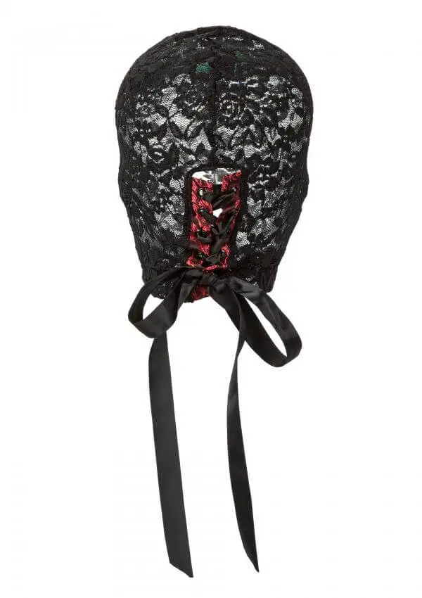 Verras jezelf en je publiek met een chique hoodie! Hoodie van stretchy zachte kant met aan de achterzijde een rood brokaatstof korsetsluiting met een lang lint.