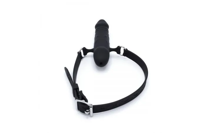 Double Penis Mouth Gag, van siliconen. De gelukkige kan door een gat in de penis ademen.
