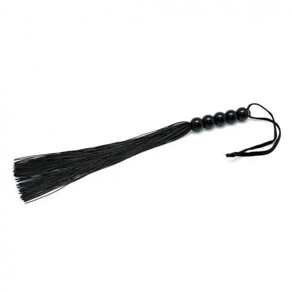 De strengen van dit siliconen zweepje zijn heel dun, je kan er mee strelen maar omdat het siliconen is kun je er ook wat minder zachtzinnig mee slaan…. Het handvat bestaat uit 5 kralen.