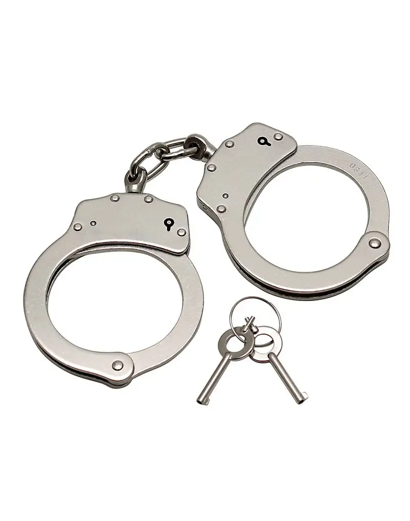 De echte, van staal. Deze handboeien krijg je alleen om als je heel stout bent geweest… Deze boeien zijn alleen met een sleutel te sluiten & openen; dat is spannend en vereist ook verantwoordelijk gebruik!