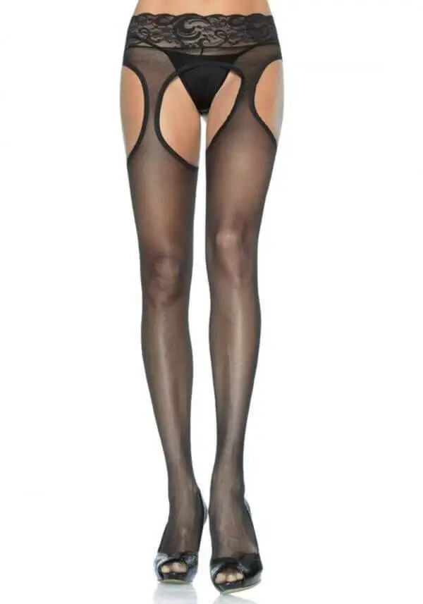 Dunne panty met een kanten tailleband, met open kruis en open zijkanten zodat het op een jarretelle lijkt!