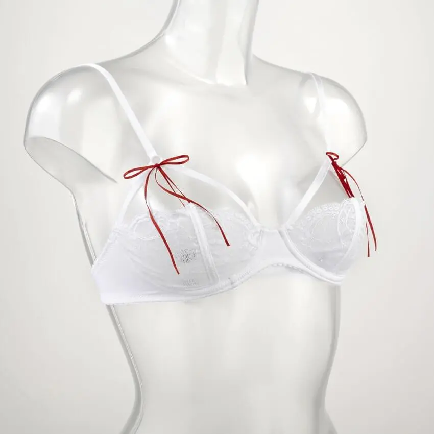 Als een lentebriesje… exclusieve beha uitgevoerd in prachtige zachte kant. Natuurlijk extreem comfortabel en perfect van design. Maar leuk aan deze beha zijn de lintjes waarmee je de cup losknoopt en je je borsten helemaal kunt ontbloten. En dan heb je de ‘Sein Nu’-beha.