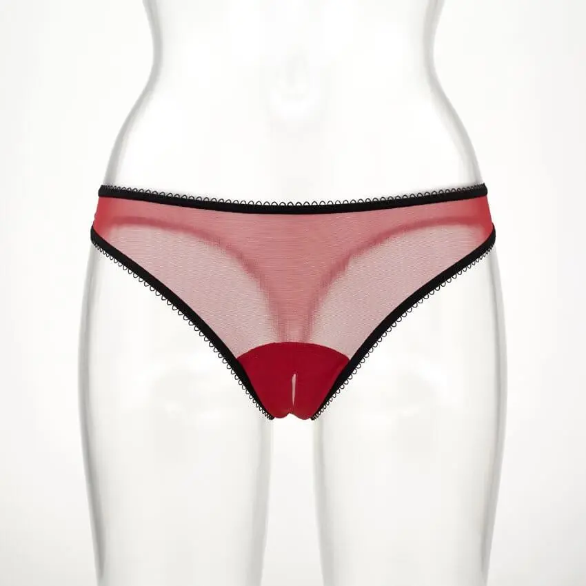 In het kruis biedt een horizontale spleet toegang tot speelse heerlijkheden… Dit is ons perfecte bioscoopslipje :-).