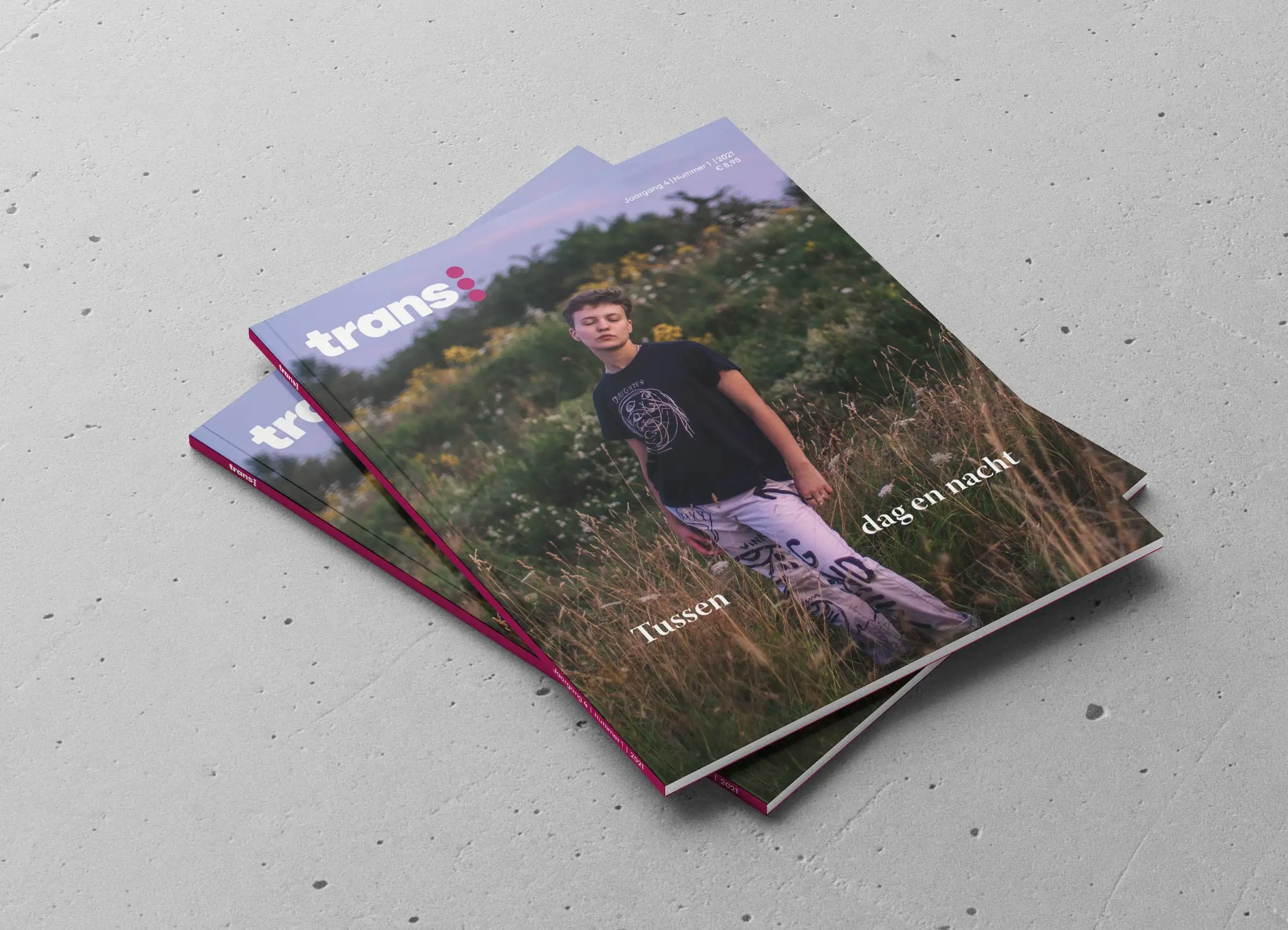 Een keer per jaar komt TRANS uit op papier: een dik blad van 132 pagina’s vol persoonlijke verhalen, interviews, essays, fotoseries en meer. Nederlandstalig.