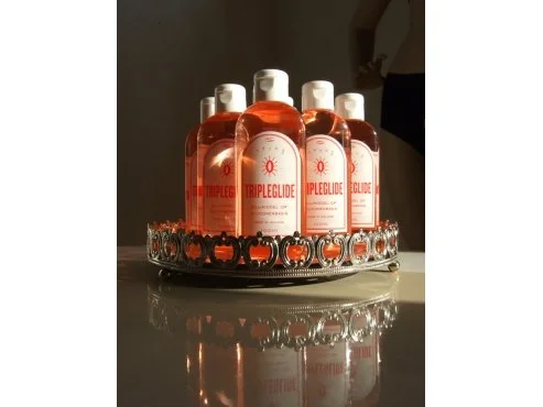 – Als je TRIPLEGLIDE of een andere siliconen glijmiddel op een gladde vloer knoeit wordt ‘ie glad en laat het zich niet makkelijk verwijderen. Let daar op als je ermee in de badkamer speelt! Met puur citroensap, zoutoplossing in water of afwasmiddel kan je het wel makkelijk verwijderen.