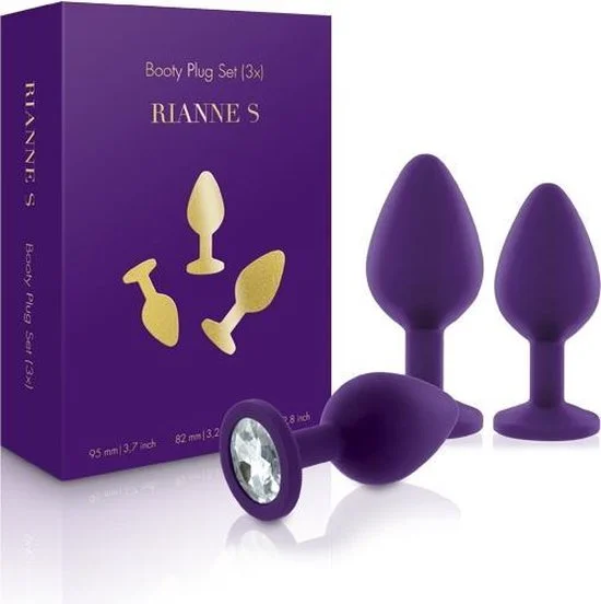 Drie butt pluggen, oplopend in maat. Fijne set om mee te variëren of als trainset. De glimmende steen is een eyecatcher:-). De pluggen zijn perfect afgewerkt en gemaakt van 100% medische siliconen, dus in alle opzichten een mooi kwaliteitsproduct, met zorg geproduceerd door Rianne S.