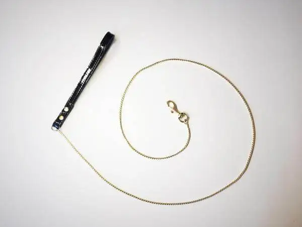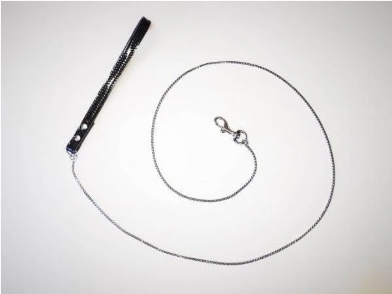 Leash bijoux: wie mooi wil zijn hoeft niet perse pijn te lijden. Onze hofleverancier Pashat zorgt voor de mooiste tools. Deze leash is gemaakt met een verfijnde zilverkleurige ketting en een handvat van leer, lak of suède.