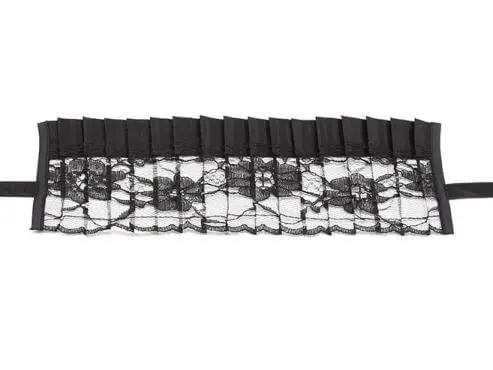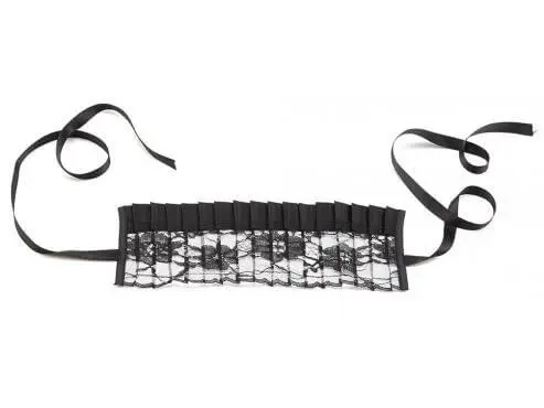Geplisseerd maskertje van dun kant afgewerkt met satijn. Sluit met satijnen lintjes.