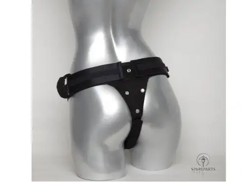 Ja! Nu gaat het ergens over… Waren we al blij met de Bend Over gordel, gaan we volledig uit ons dak met de Theo harness van Spareparts! Deze geweldige strap-on harness zit comfortabel en strak als een huis. Je kan hem rond je heupen en tussen je benen precies naar jouw maat vormen. Hiervoor zijn er de gemakkelijke drukknoppen en de schuifjes. De dildo komt vanuit de plooi van het voorstuk, en sluit aan de achterkant, zodat het een zakje vormt en je Venusheuvel beschermt tegen de harde achterkant van je dildo. Ook zijn er twee zakjes voor een kleine bullet of een kegeltje als je vibraties wilt toevoegen voor extra genot!